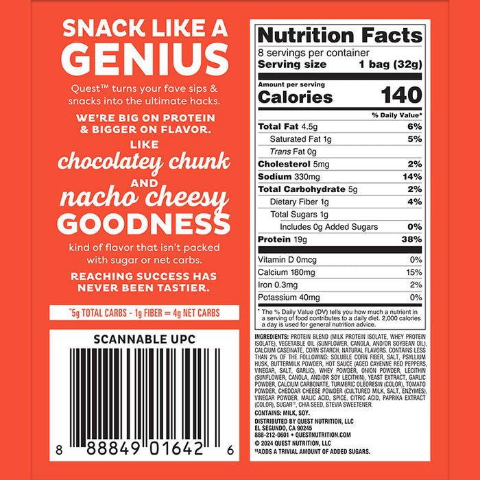 Les chips Quest Protein sont des croustilles riches en protéines qui sont disponibles en deux variétés: Quest Protein Chips et Quest Tortilla Style Protein Chips. Quelle que soit la sorte que vous choisissez, vous optez pour une collation savoureuse avec au moins 18g de protéines par sac et un minimum de glucides nets.
