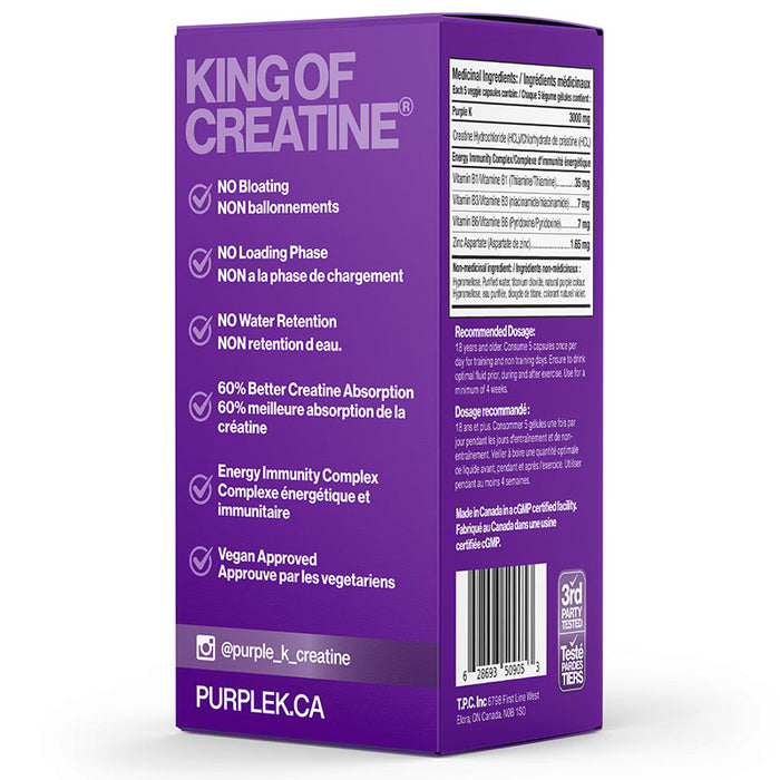 PURPLE-K goes beyond the standard benefits of a creatine supplement by including the Energy Immunity Complex — a strategic blend of B vitamins and zinc. This unique formula is designed to support overall health, enhance athletic performance, strengthen the immune system, and boost the body’s natural energy production.